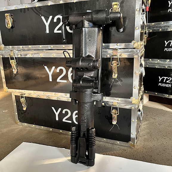 Ручные буровые установки Y26 / Y19A предназначены для бурения скважин, вторичного взрыва и других работ в горнодобывающих, железнодорожных и гидротехнических работах. Он подходит для сухого и мокрого бурения твердых и средних твердых пород и может использоваться для вертикальных или наклонных взрывных отверстий. Для мокрого бурения достаточно заменить гайку трахеи на гайку водопровода, а затем соединить трубу.